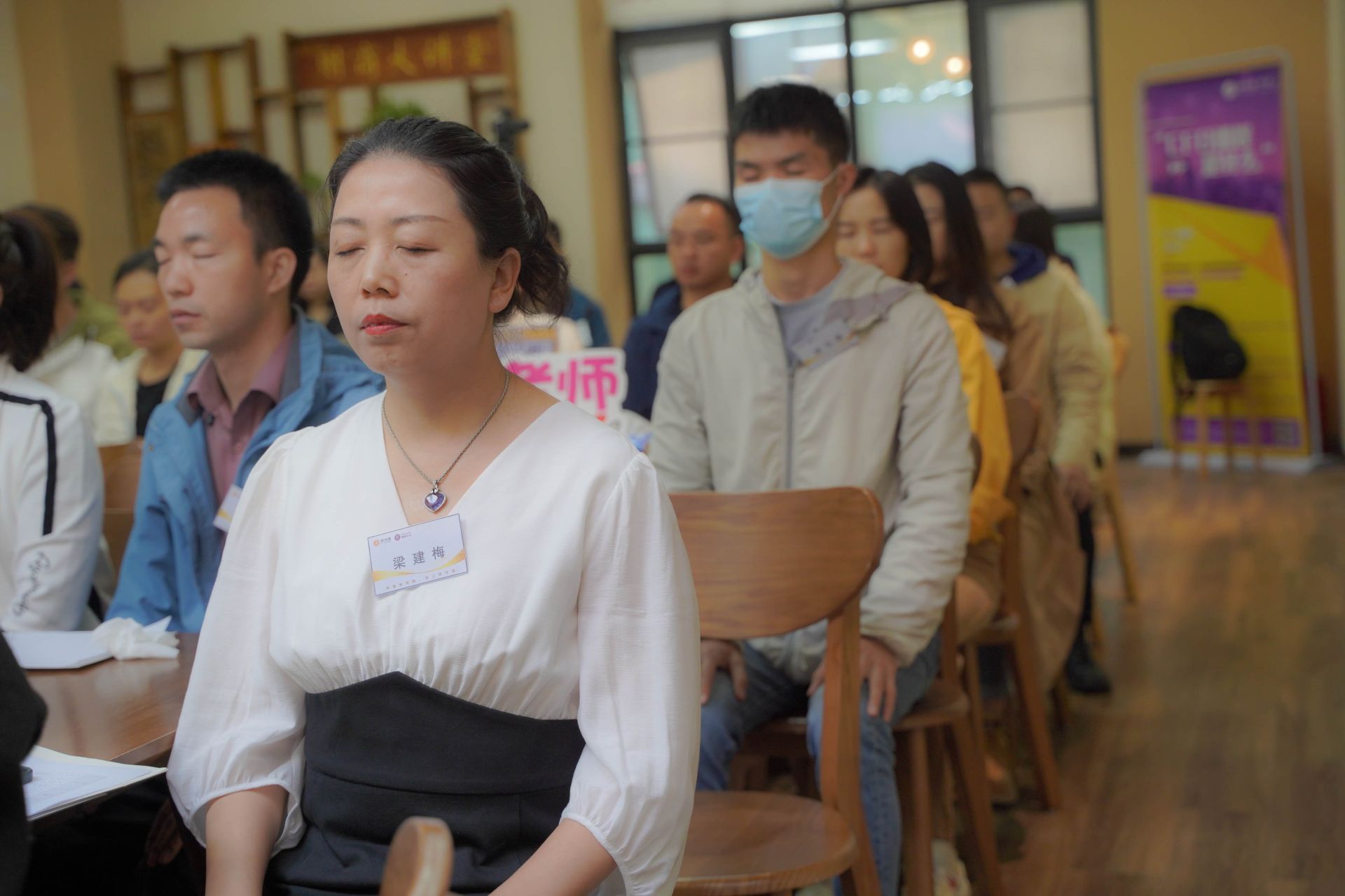 所以每當(dāng)課程開始前,我們的國學(xué)導(dǎo)師——久亮與紫瀾老師就會帶大家一起體驗靜坐,療愈身心,獲得安定。