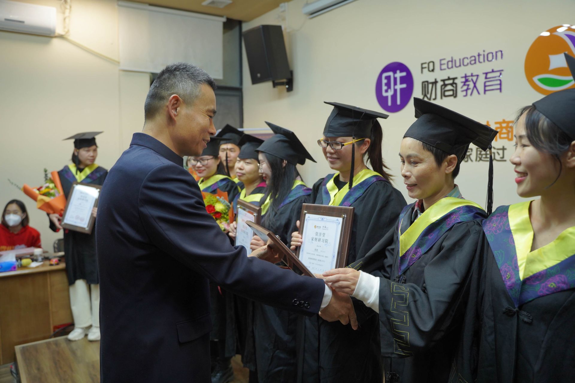 工作人員也為此次來到現(xiàn)場的畢業(yè)學(xué)員準(zhǔn)備好了學(xué)士服,大家都換上衣服,依次上臺接受資灃堂頒發(fā)的畢業(yè)證書以及精美禮品,可謂儀式感滿滿,再次恭喜各位順利畢業(yè)的小伙伴們!